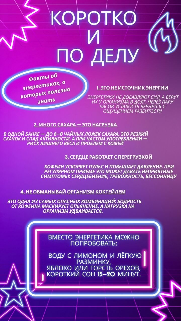 Министерство образования обращает внимание: энергетические напитки не являются безобидным продуктом и могут нанести вред здоровью.